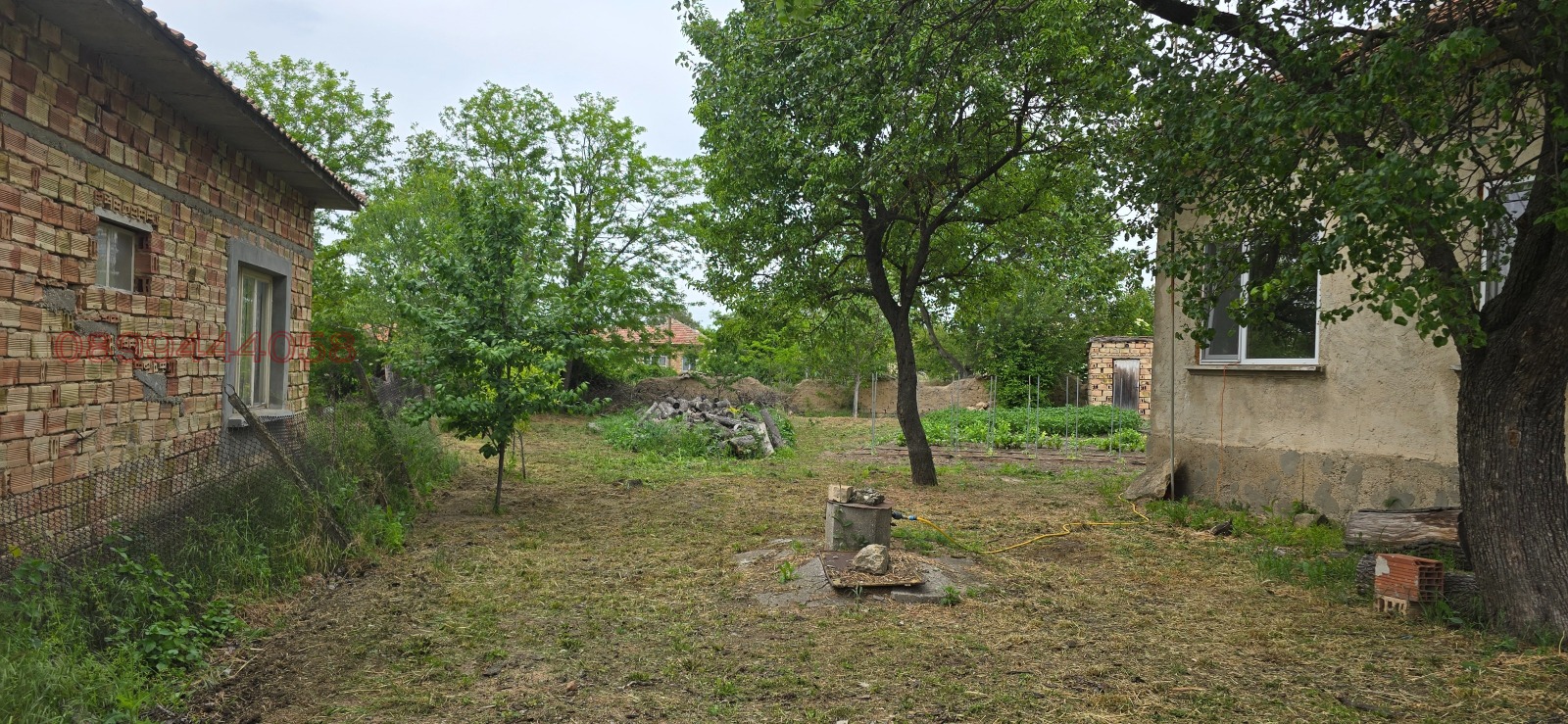 Продавам две къщи, с гараж и други постройки в общ парцел 1 декър. Едната къща е тухлена със застроена площ 130 кв. м, а другата е керпичена с площ 120 кв. м. Гаража е тухлен.