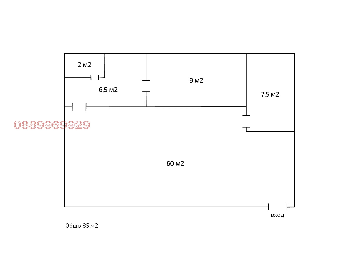 Пространството е с площ от 85 кв.м и позволява разнообразни решения за организация според нуждите на бъдещия наемател. Към момента е на етап довършителен ремонт - чудесна възможност да го оформите изцяло по ваш вкус и концепция.