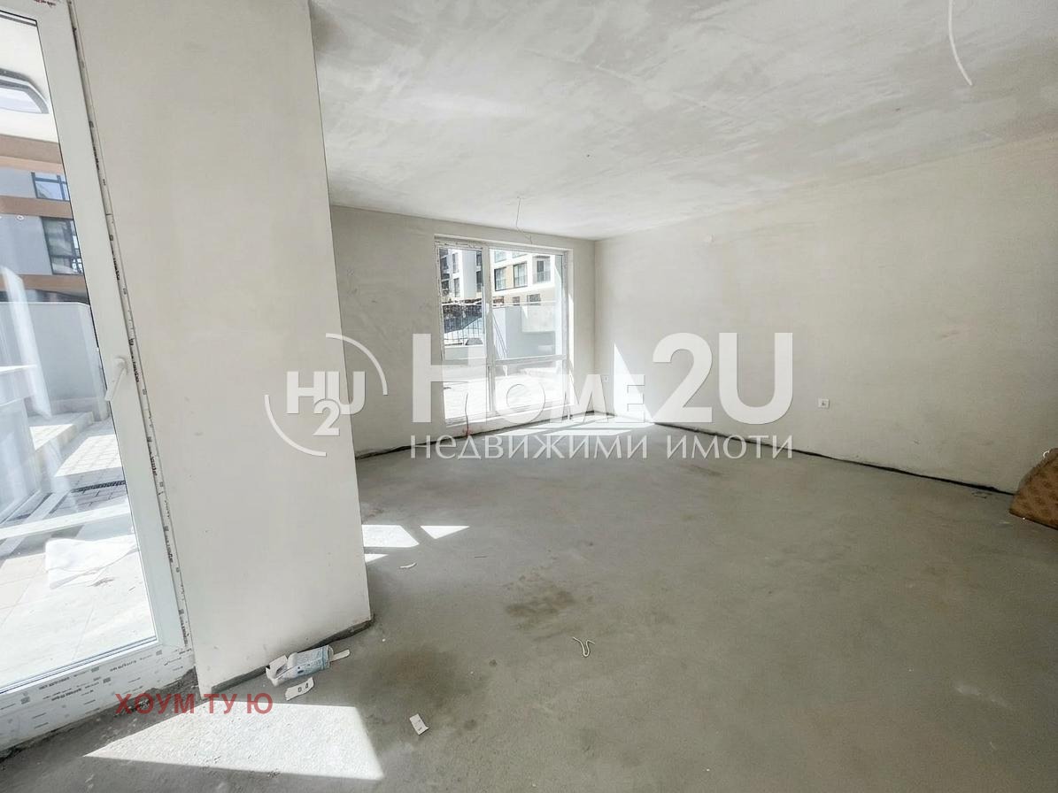 АКТ 16 ! ! ! ЮЖЕН ! ! ! ДВОР - 80 кв.м ! ! ! Представяме на вашето внимание тристаен апартамент, с изложение изток-юг, със следното функционално разпределение: дневна с излаз на тераса, две спални и две бани. Жилището се продава на шпакловка и замазка, като едната баня е напълно завършена, а другата може да се завърши по желание на купувача. Сградата е с разрешение за ползване от 2025 година, завършена е с висококачествени материали, намира се в непосредствена близост до магазините 'Фантастико' и ' Кауфланд'. Обади се сега и цитирай този код: 237536