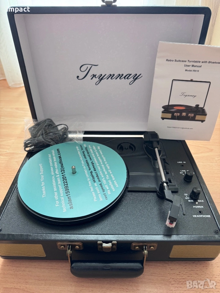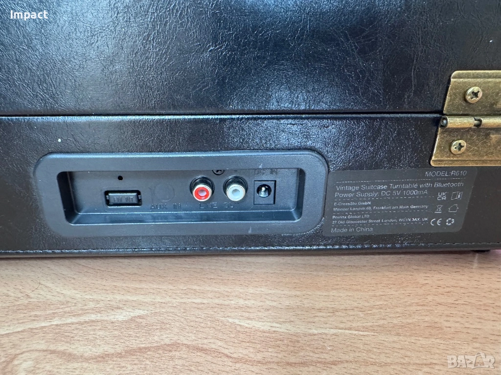 3-скоростен винилов грамофон, високоговорители, елегантен калъф, PU кожа, BT AUX RCA