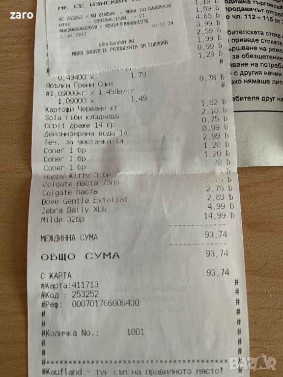 Това е съобразено с цената, която се вижда на фактурата (94 лв.).