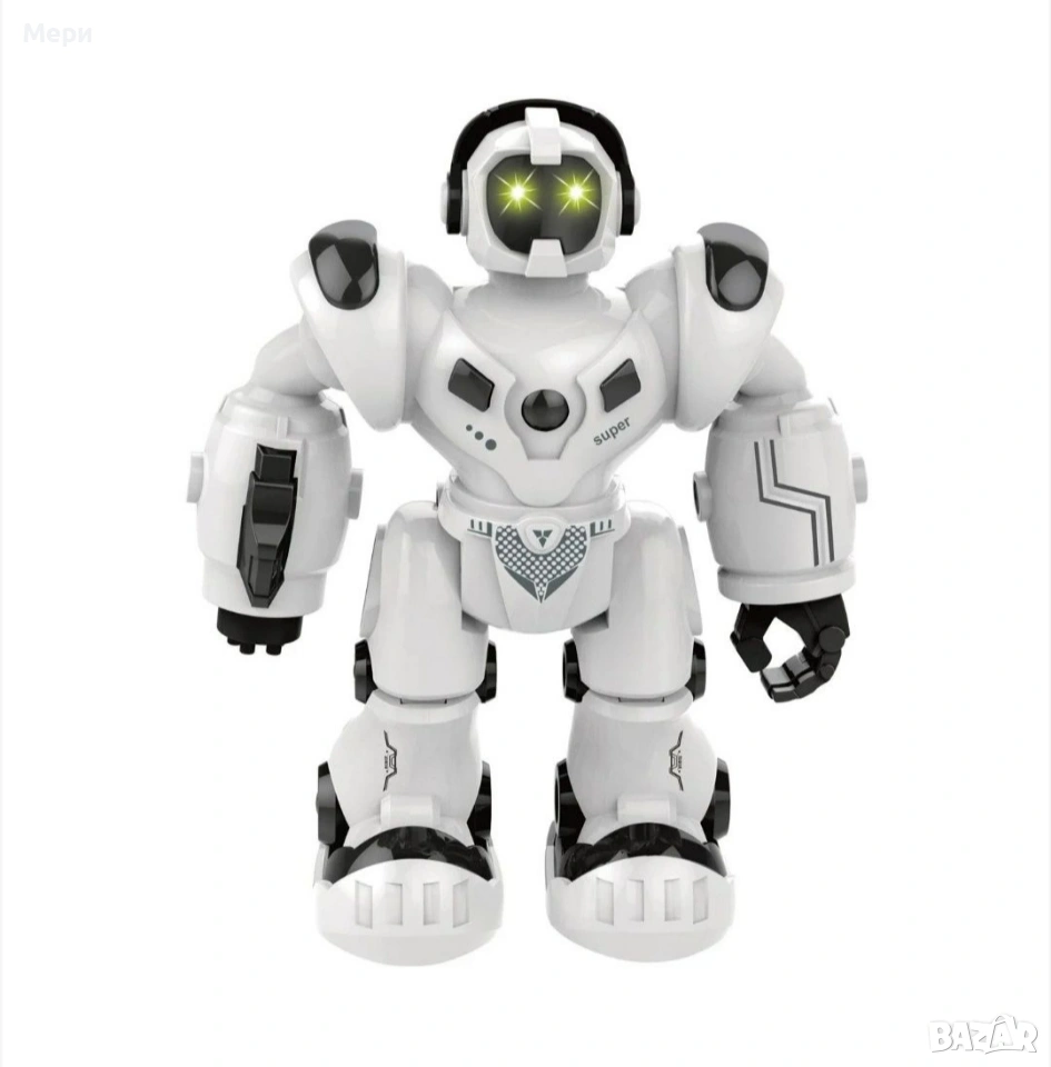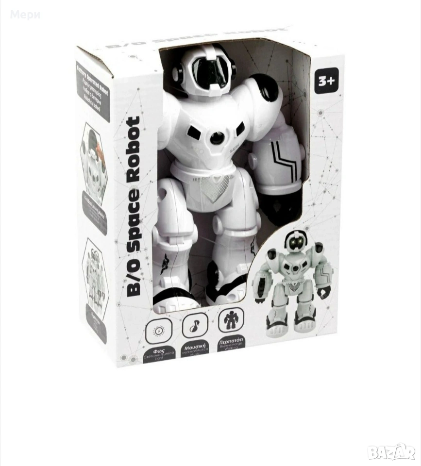 Интерактивен робот за деца – Космически робот със светлини и звуци, 3+ години Пригответе се за галактическо приключение с този интерактивен космически робот! Идеален за малки изследователи на вселената, Space Robot оживява със светлини, звуци и движение, предлагайки грандиозно игрово изживяване. Основни характеристики: Интерактивни функции : цветни светлини и завладяващи звукови ефекти Футуристичен дизайн : вдъхновен от космическите роботи, той веднага привлича вниманието на децата Движи ръцете и краката : имитира походката и жестовете на истински робот Лесно активиране : работи с батерия Включени са батерии Идеална опаковка за подарък : атрактивна кутия, идеална за подаряване на малки деца Стимулира въображението и ролевата игра Помага за развитието на слухово и зрително възприятие Идеален за индивидуална игра или с приятели Подходящо за деца над 3 години - идеален подарък за малки фенове на технологиите и космическите приключения!Ползи за развитието : Стимулира въображението и ролевата игра Помага за развитието на слухово и зрително възприятие Идеален за индивидуална игра или с приятели Подходящо за деца над 3 години - идеален подарък за малки фенове на технологиите и космическите приключения!