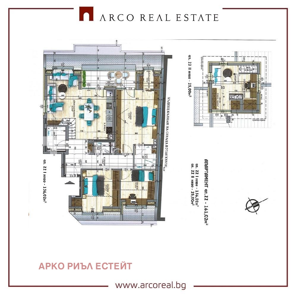 Апартамент 22 е на шести от шест етажа. Застроена площ 161.02 кв.м.