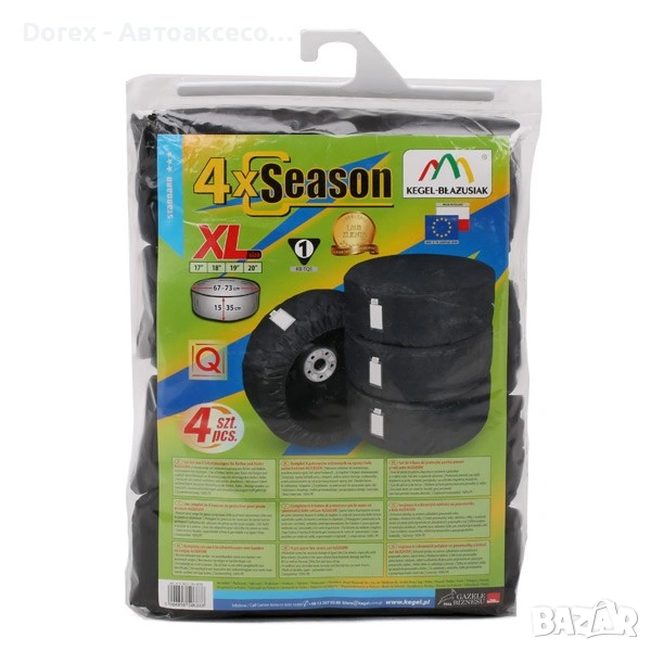 Изработени от здрав полиестер, калъфите предпазват от прах, влага и вредни UV лъчи, като удължават живота на гумите и улесняват тяхното съхранение.
