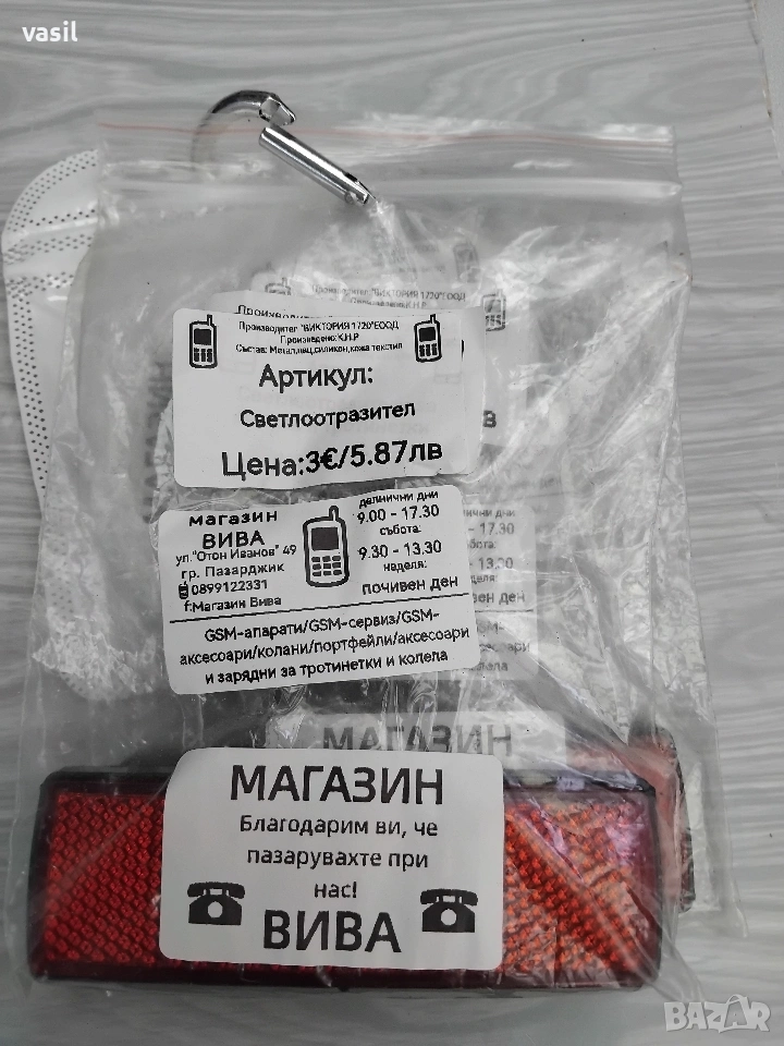 Продавам светлоотразител за колело / тротинетка, за по-добра видимост и безопасност.