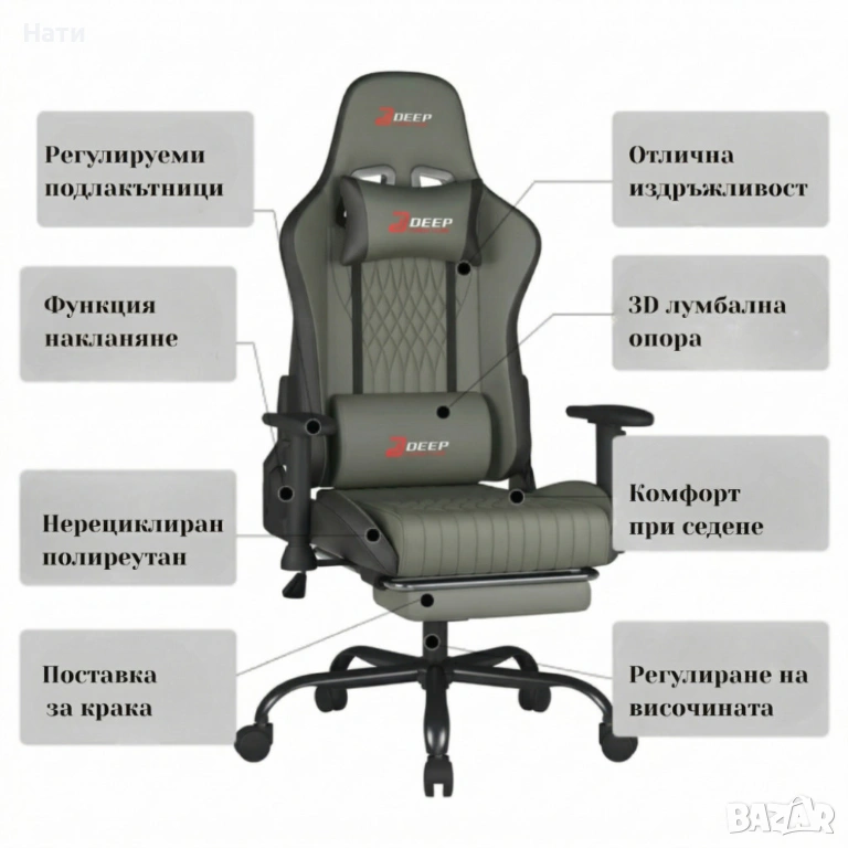 НОВ Ергономичен геймърски стол с поставка за крака, регулируема височина и 3D подлакътници - 5 цвята, снимка 1 - Столове - 54041204 НОВ Ергономичен геймърски стол с поставка за крака, регулируема височина и 3D подлакътници - 5 цвята, снимка 2 - Столове - 54041204 НОВ Ергономичен геймърски стол с поставка за крака, регулируема височина и 3D подлакътници - 5 цвята, снимка 3 - Столове - 54041204 НОВ Ергономичен геймърски стол с поставка за крака, регулируема височина и 3D подлакътници - 5 цвята, снимка 4 - Столове - 54041204 НОВ Ергономичен геймърски стол с поставка за крака, регулируема височина и 3D подлакътници - 5 цвята, снимка 5 - Столове - 54041204 НОВ Ергономичен геймърски стол с поставка за крака, регулируема височина и 3D подлакътници - 5 цвята, снимка 6 - Столове - 54041204 НОВ Ергономичен геймърски стол с поставка за крака, регулируема височина и 3D подлакътници - 5 цвята, снимка 7 - Столове - 54041204 НОВ Ергономичен геймърски стол с поставка за крака, регулируема височина и 3D подлакътници - 5 цвята, снимка 8 - Столове - 54041204 1/8