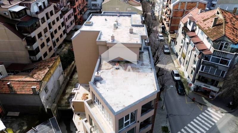 ЕКСКЛУЗИВНО! ЕРА Варна Тренд предлага за продажба двустаен, югозападен, завършен до ключ апартамент с бонус голяма тераса, в новопостроена сграда пред Акт 16, над Макдрайв. Имотът е със застроена площ 39,91 кв.м (45 кв.м с общите части), разположен на шести етаж. Състои се от дневна с кухненски бокс (15 кв.м), спалня (11 кв.м), обща за двете стаи тераса (5 кв.м), допълнително голяма покривна тераса (100 кв.м), коридор (4,5 кв.м) и баня с тоалетна (4,2 кв.м). Изложението е югозапад.