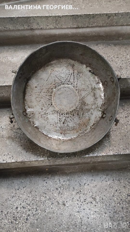 Предлагам Ви медна тава старинна кована, калайдисана.Използва се за варене на сладка и лютеница.