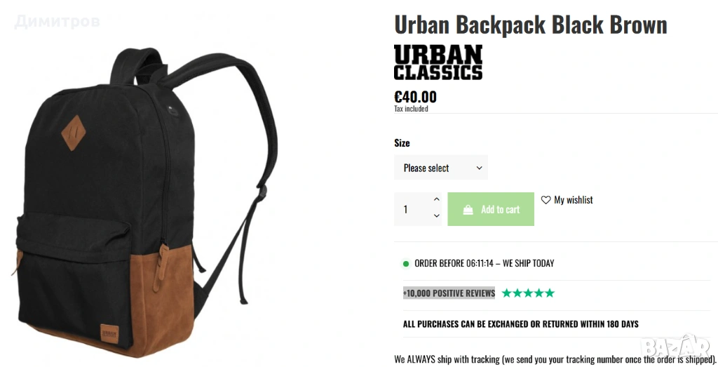 3. Раница Urban Classics - нова, с етикет. Цвят - черен, с кафяв велур. Размери - 45см х 30см х 12см.