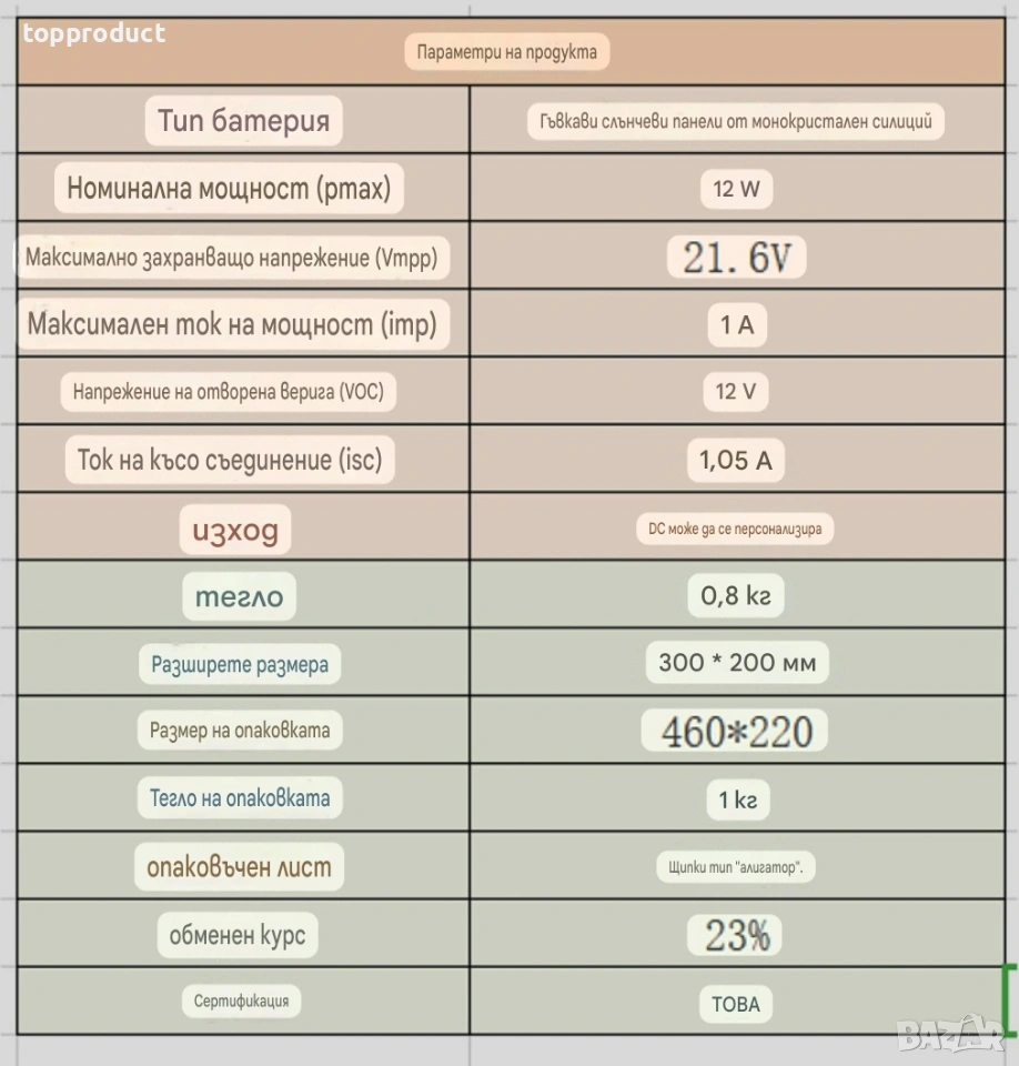Соларни панели 12v, 12W → Обява 54041487