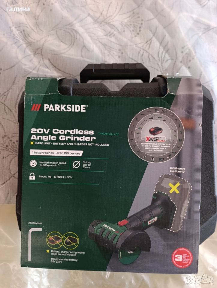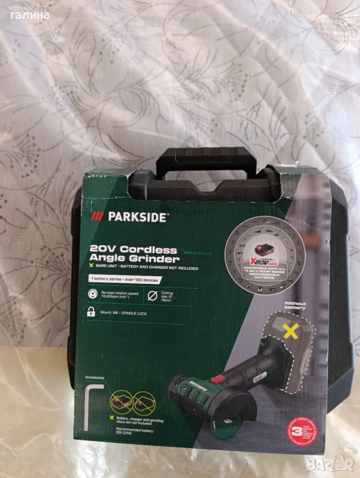 Акумулаторен ъглошлайф PARKSIDE 20V – нов, в куфар → Обява 54041497