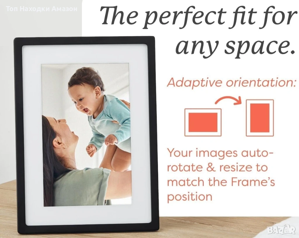 ТОП Цена !!!Цената на този продукт във всеки един сайт е над 200 паунда !!! Това е Skylight Frame, интелигентна дигитална фоторамка. Дисплей: 15-инчов цветен сензорен екран . Свързаност: Работи чрез Wi-Fi за незабавно споделяне на снимки и видеоклипове от всяко място. Функционалност: Снимките се изпращат директно към рамката чрез уникален имейл адрес или мобилно приложение. Уникална характеристика: Разполага с "heart" бутон на екрана, чрез който получателят може да отбележи, че харесва снимката, уведомявайки изпращача.