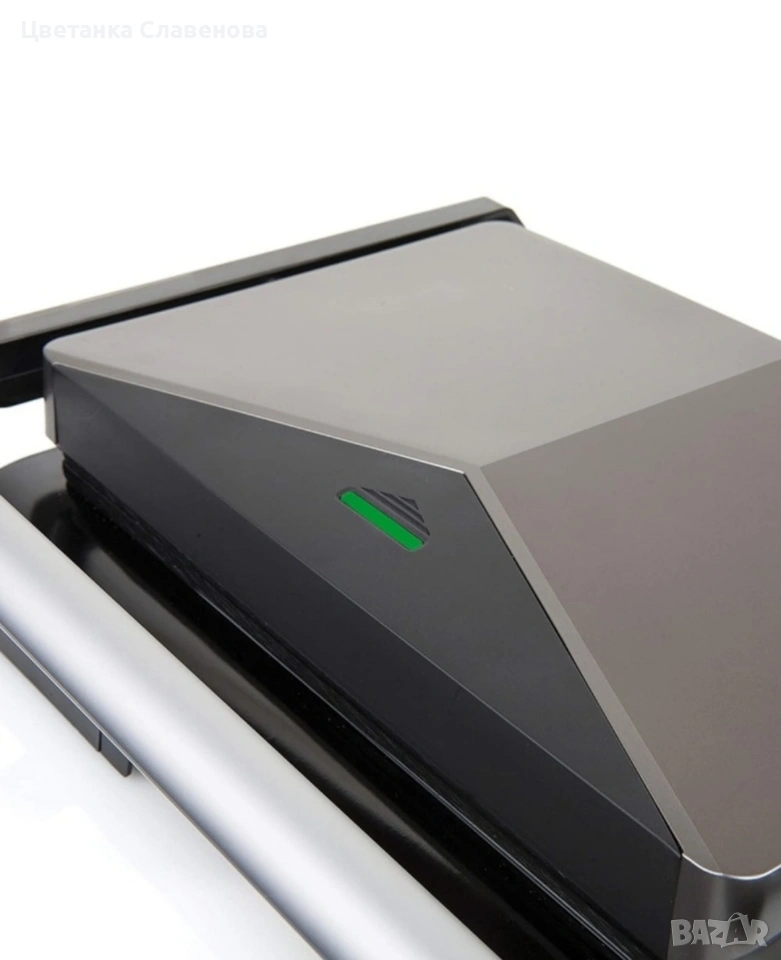 Горната част на скарата е снабдена с ергономична топлоустойчива дръжка, система за заключване и индикатор, който показва кога можете да поставите сандвича в уреда. Също така, скарата е снабдена с подвижна тава, идеална за източване на излишната мазнина.