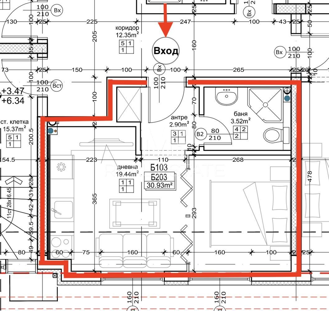 Обща площ: 38.31кв.м.; Чиста площ: 30.93кв.м.; Идеални части: 7.38кв.м.;