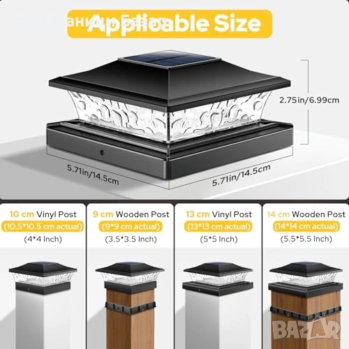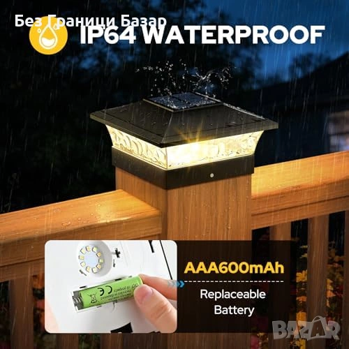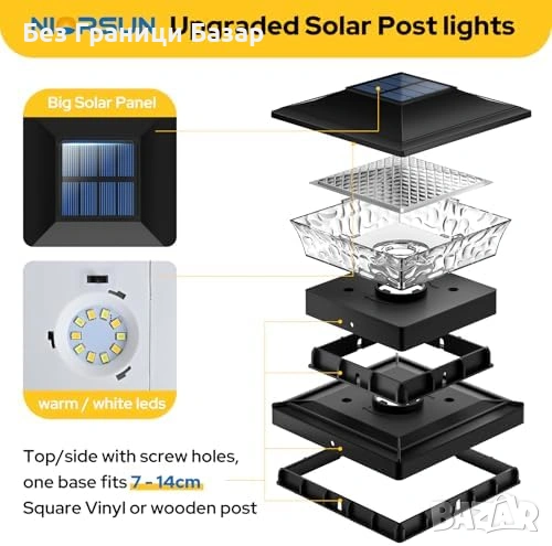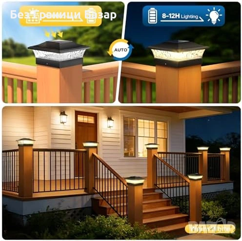 Нови Соларни лампи за колове и ограда двор 4 броя водоустойчиви 2 цвята