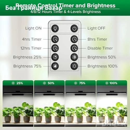 Нова LED лампа за растения 35W стенен монтаж 4 нива таймер пълен спектър