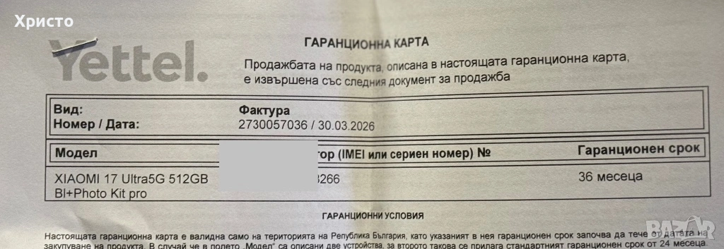 Чисто нов, неразпечатан Xiaomi 17 Ultra – телефонът не е използван и е в абсолютно фабрично състояние. Закупен е на 30 Март 2026г и разполага с 36 месеца гаранция. Работи безупречно с всички оператори. Моделът е сред най-високия клас на Xiaomi – мощен, бърз и създаден за хора, които искат топ производителност и камера на ниво.