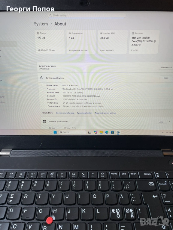 Лаптопът е в страхотно визуално състояние и технически изряден. Преинсталиран с оригинален и лицензиран Windows 11 PRO, готов за работа.