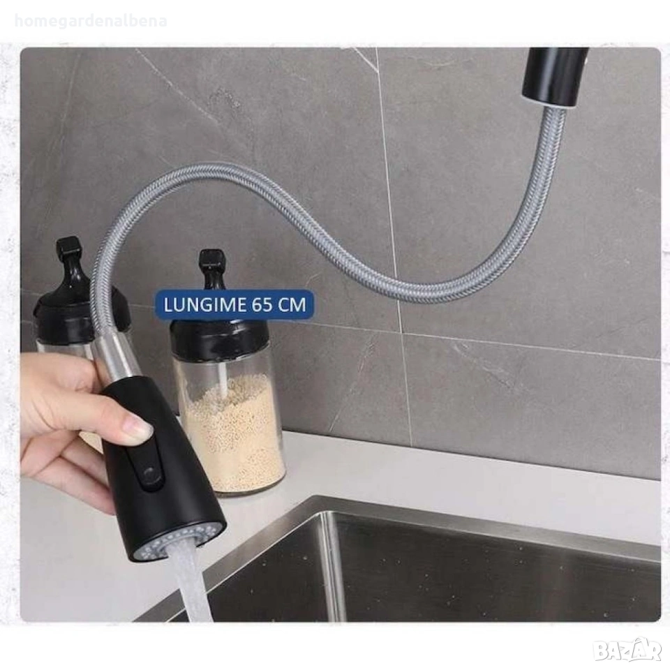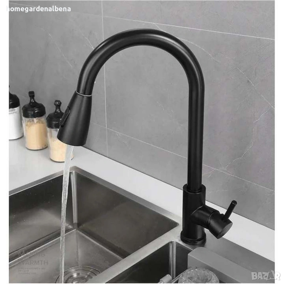 Home & Garden by Albena – Кухненски смесител с издърпващ се душ, матово черен