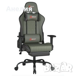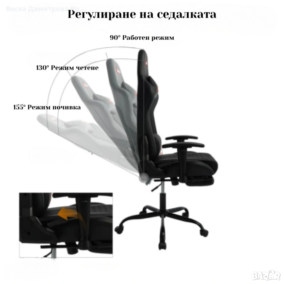 Ергономичен бял геймърски стол с поставка за крака, регулируема височина и 3D подлакътници