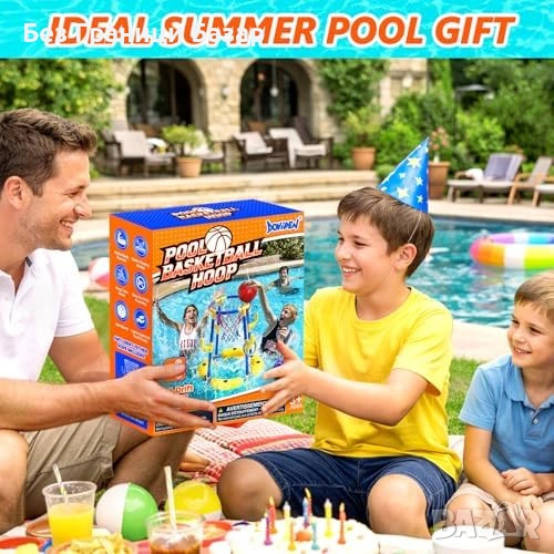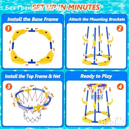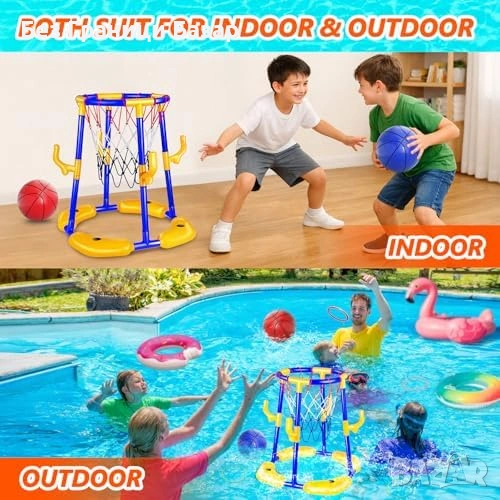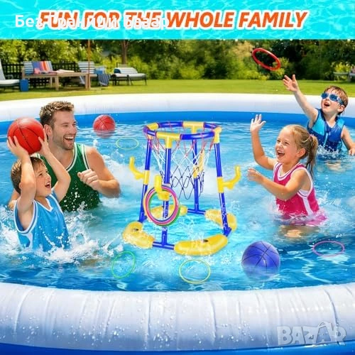 Нов Плаващ баскетболен кош за басейн с 4 топки и помпа за водни игри деца