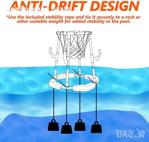 Плаващ баскетболен кош за басейн с стабилна anti-drift конструкция