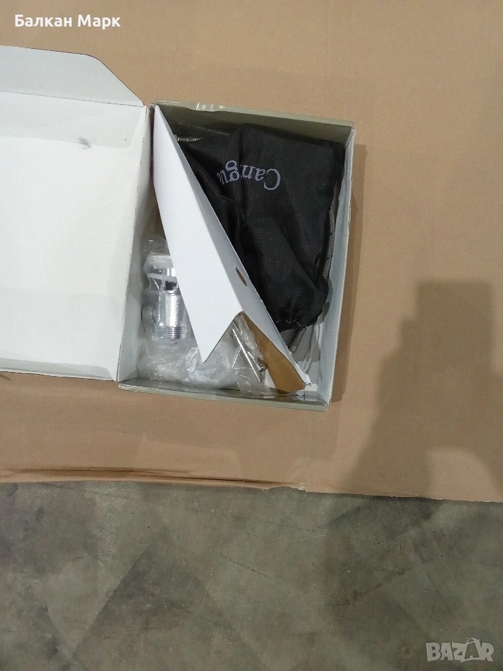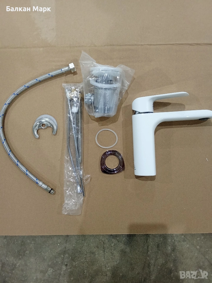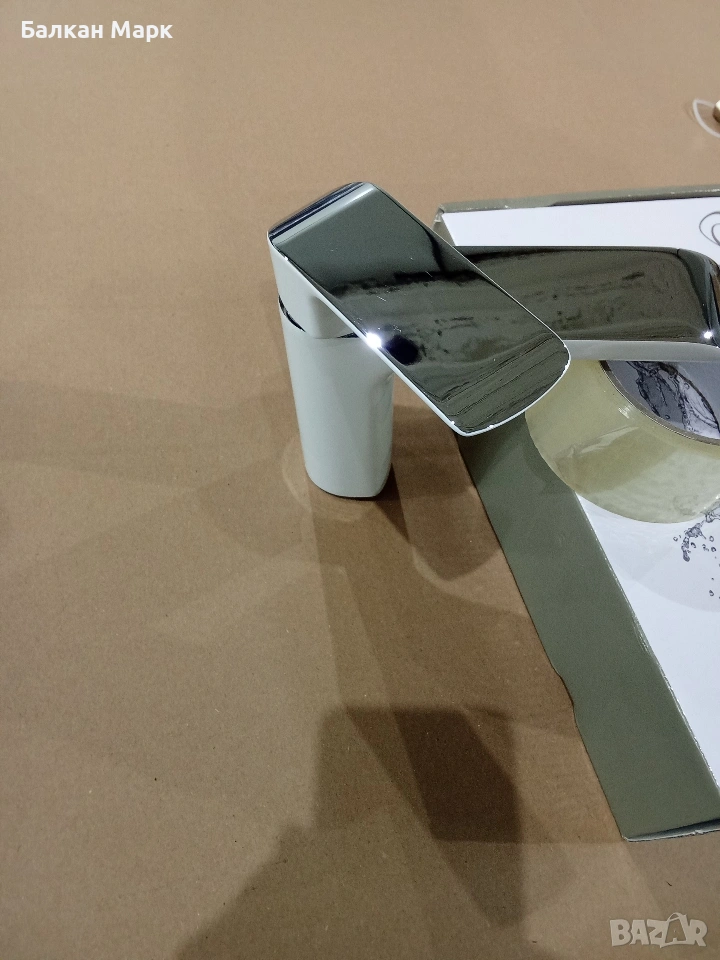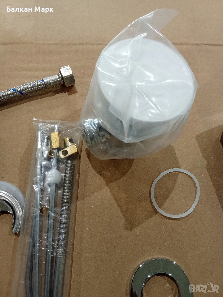 ЗАБЕЛЕЖКА: Липсва една мека връзка (стандартна 3/8"). По металната основа, върху която стъпва смесителят, има микроскопични драскотини (вероятно мострен модел). След монтаж те остават под тялото и са напълно невидими.