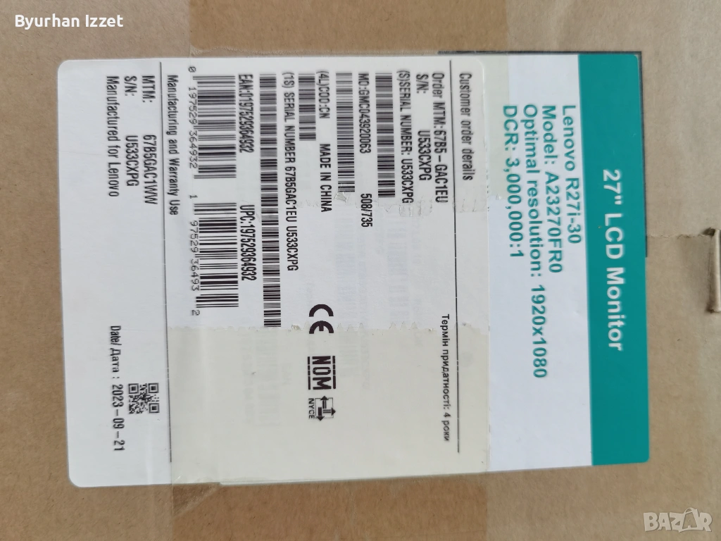 Геймърски монитор lenovo legion r27i-30, снимка 1 - Монитори - 54043096 Геймърски монитор lenovo legion r27i-30, снимка 2 - Монитори - 54043096 Геймърски монитор lenovo legion r27i-30, снимка 3 - Монитори - 54043096 1/3