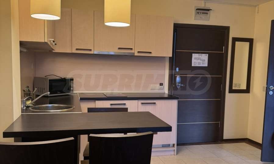 Представяме напълно обзаведен двустаен апартамент под наем в луксозен комплекс, на пешеходно разстояние от центъра и на 350 м от ски лифта на популярния планински курорт.