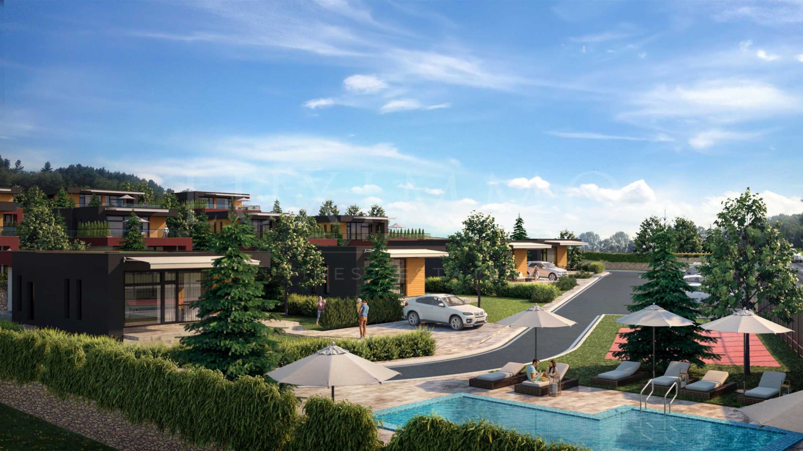 На разположение на собствениците ще има външен открит басейн, деска площадка и контролиран достъп.