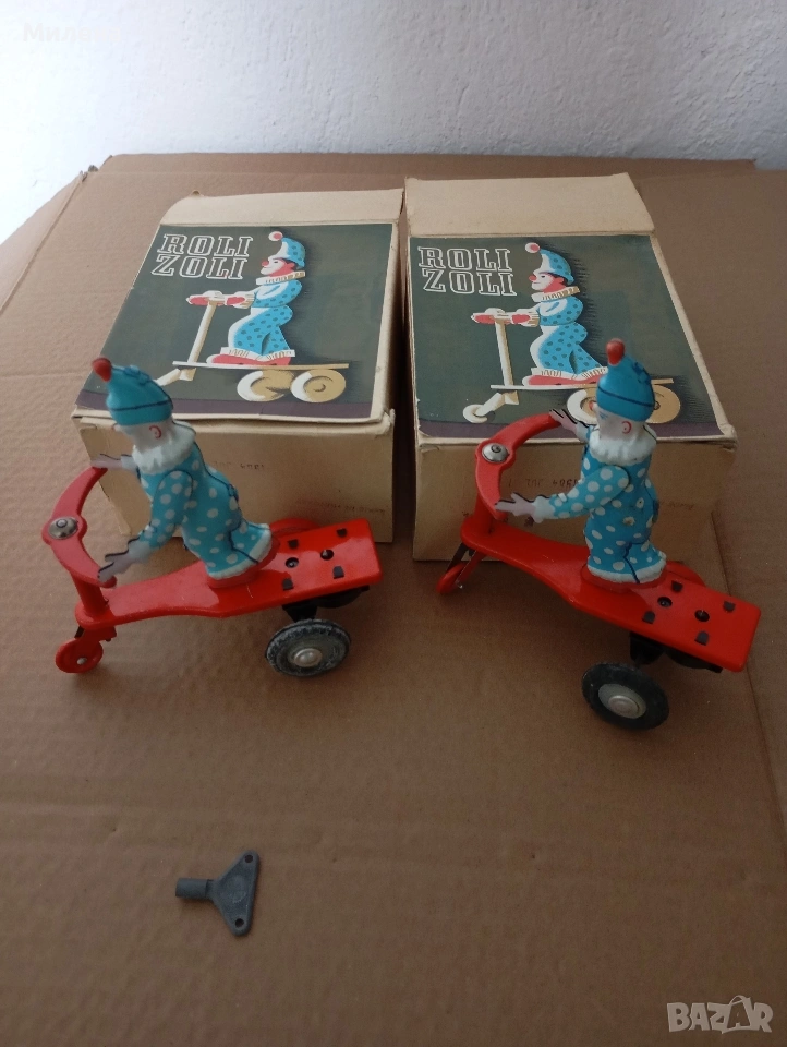 Лично предаване във Варна. Продавам механична метална матрьошка и патета.Работят чрез навиване на ключе. Цена 40 Евро за един брой. Продавам момче на тротинетка. Два броя. С печат на кутията от 1984,произход Унгария.Цена 60 евро за брой. И две механични игри с коли. Едната е без ключе. Цена за двете заедно 140евро. И музикална кутия за бижута с танцуваща балеринка. Цена 30 Евро. И едно пате неработещо. Цена 3 евро.