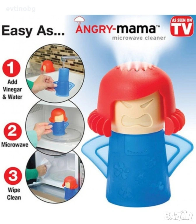 Представяме Ви един нов и лесен начин за почистване на микровълновата фурна. Край на купищата неефективни препарати, ръкавици, четки, гъби и прочие. Имате нужда само и единствено от уредd за почистване на микровълнова фурна Angry mama.