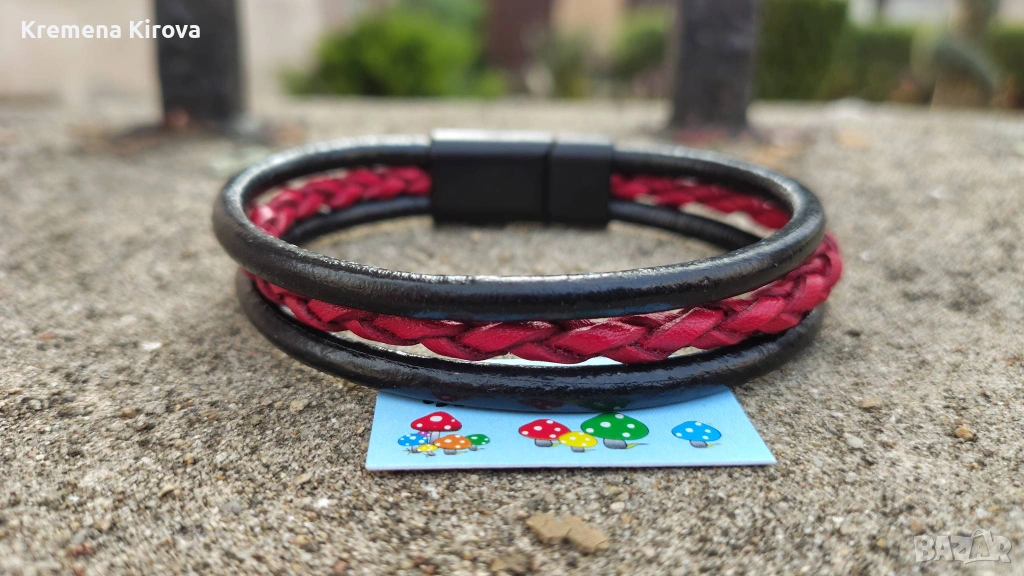Унисекс гривни от естествена кожа и стомана. Идея за подарък. Бижута Луди гъби. → Обява 54043361