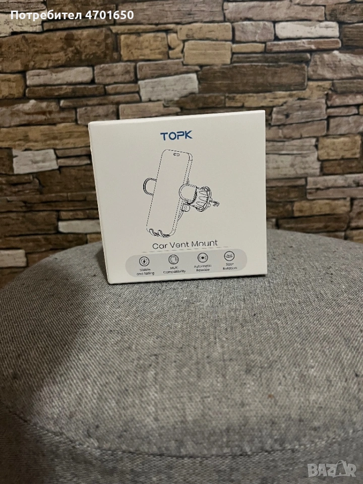 Чисто нова автоматична стойка за телефон за кола в опаковка.