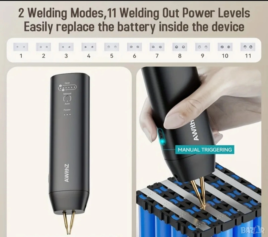 Точков заваръчен апарат за батерии, AWithZ ръчен точков заваръчен апарат с 11 регулируеми предавки, автоматичен и ръчен режим, заваръчен апарат за батерии 18650, за заваряване на никелови листове, желязо, неръждаема стомана !!!