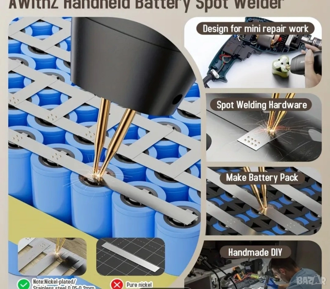 USB -зареждане Type-C.Точков заваръчен апарат за батерии, → Обява 54043662