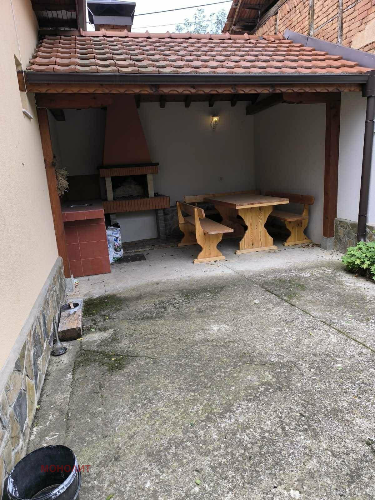 Имотът представлява дворно място с площ 874 кв.м, заедно с построените в него Двуетажна масивна жилищна сграда със ЗП 55 кв.м, едноетажна жилищна постройка с площ 34 кв.м, стпопански постройки с площ 22 кв.м и 32 кв.м. След основен ремонт. Подменен покрив, дренаж отвън на къщата, канал. Външна изолация - 10 см. На първи етаж е обособена дневна - механа с камина, кухненски бокс и складово помещение - 20 кв.м /с възможност за преустройство/. Втори етаж се състои от дневна, две спални, баня с тоалетна и тоалетна. Нова и подсилена ел. инсталация, сменена дограма, нова мазилка, нови ковани тавани, подновена подова настилка. Отоплението е решено с радиатори във всяка стая / тип Agax с интернет управление /. Покрита барбекю зона, равен двор в голямата си част. Прилежащ масивен гараж с площ 30 кв.м.