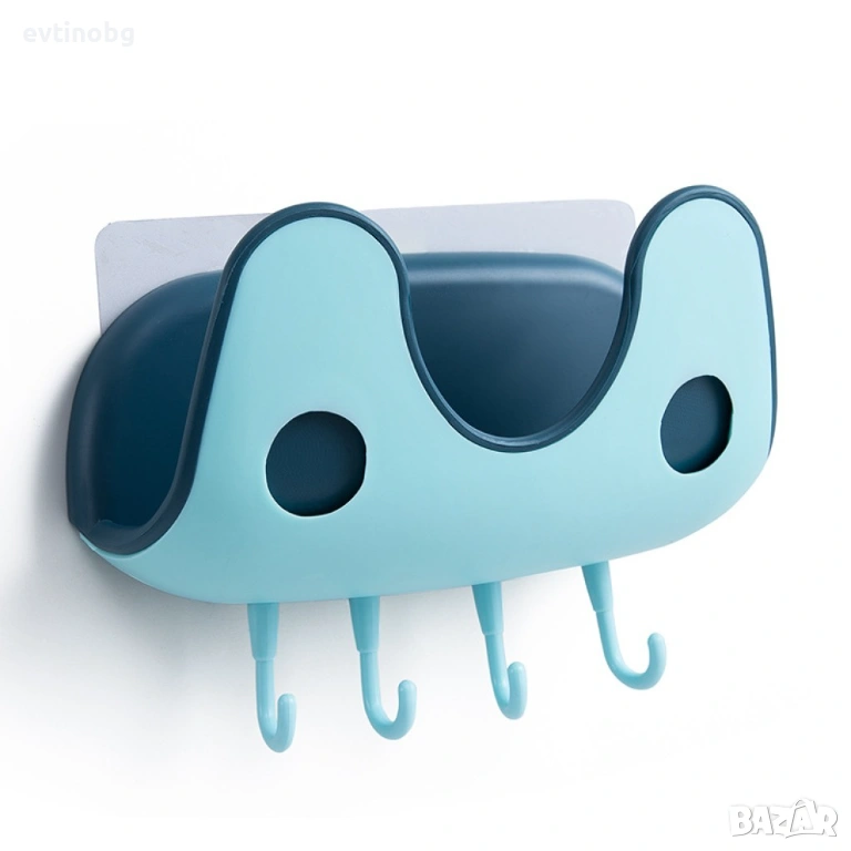 Многофункционална кухненска стойка за прибори / Цвят: Според нал. в склада / Материал: ABS пластмаса; Размер: 20 х 10 см.; Поставка за капак/дъска: 1 брой; Куки за прибори: 4 броя; Издържа: До 10 кг.