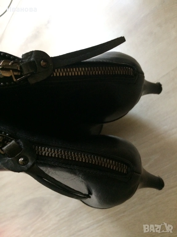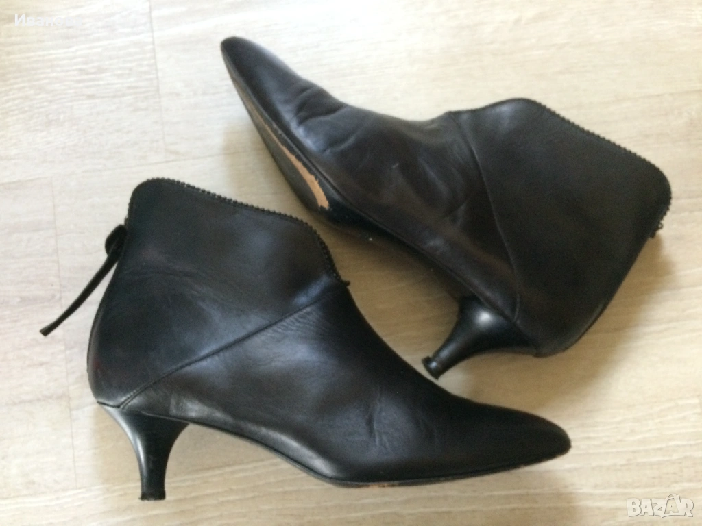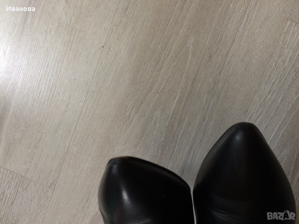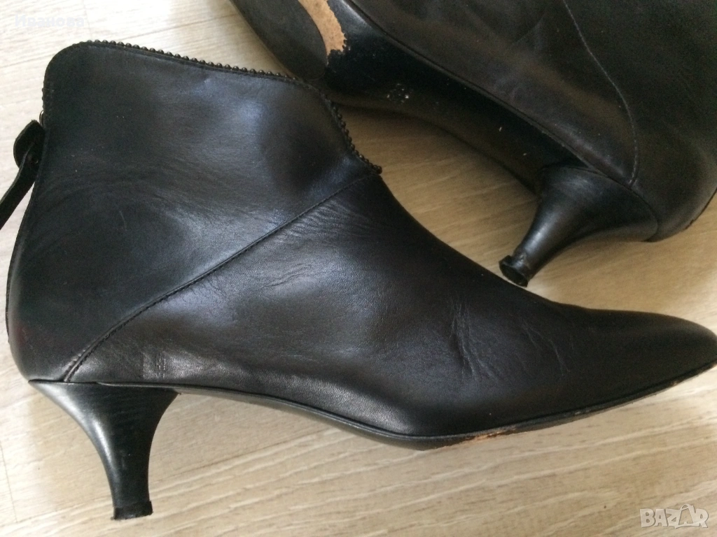 Естественна кожа отвън и отвътре.Стоят много елегантно.Носени са и имат чукнато отпред на връхчетата и на токчетата.№ 38.