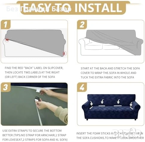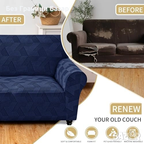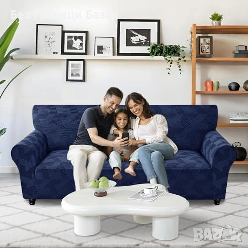Нов защитен Еластичен калъф за диван XL 4 места неплъзгащ тъмносин за мебели