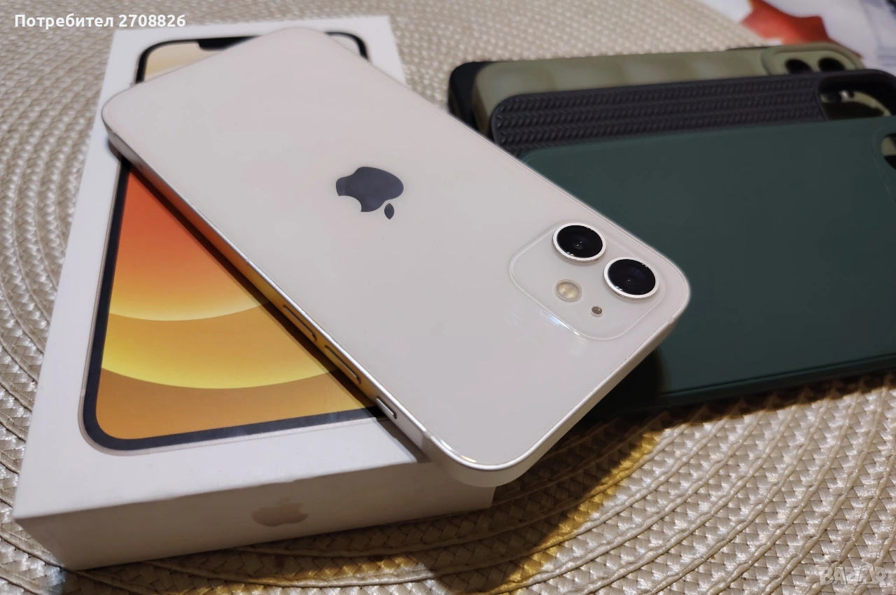Много запазен iPhone 12 White 64GB комплект кабел кутия протектор → Обява 54044988