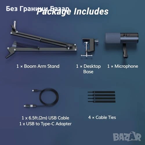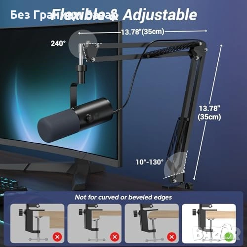 В комплект със стойка тип boom arm