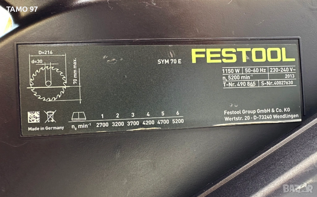 Festool SYM 70 E - Трион кръгов с герунг за летви перфектен!