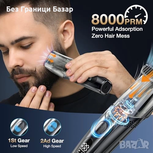 Електрическа машинка за брада с вградена вакуумна система за по-чисто подстригване