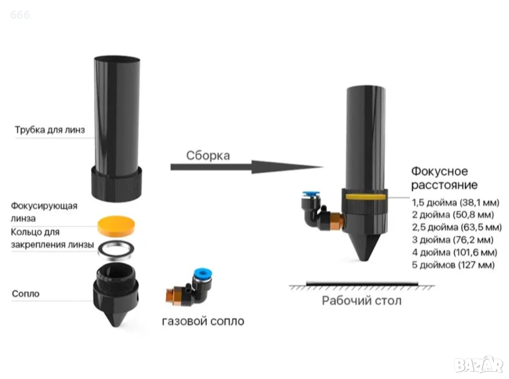 Фокусно разстояние: 63,5 мм