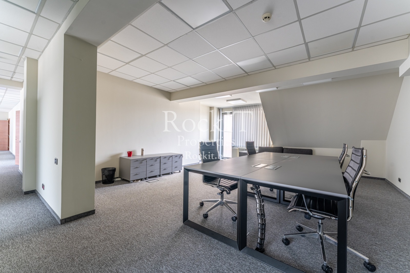 Офисното пространство е организирано функционално и предлага висока степен на адаптивност: голямо предверие със санитарен възел, обширно отворено пространство, разпределено на отделни зали и кабинети, допълнителни санитарни възли, сървърно помещение, три малки тераси и спомагателни помещения. Разпределението подлежи на пълна реорганизация съобразно нуждите на наемателя. Офисът разполага с структурно окабеляване, централно захранване, централна климатична и вентилационна система Daikin, както и контрол на достъпа.