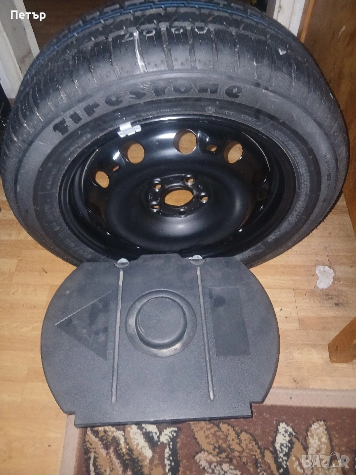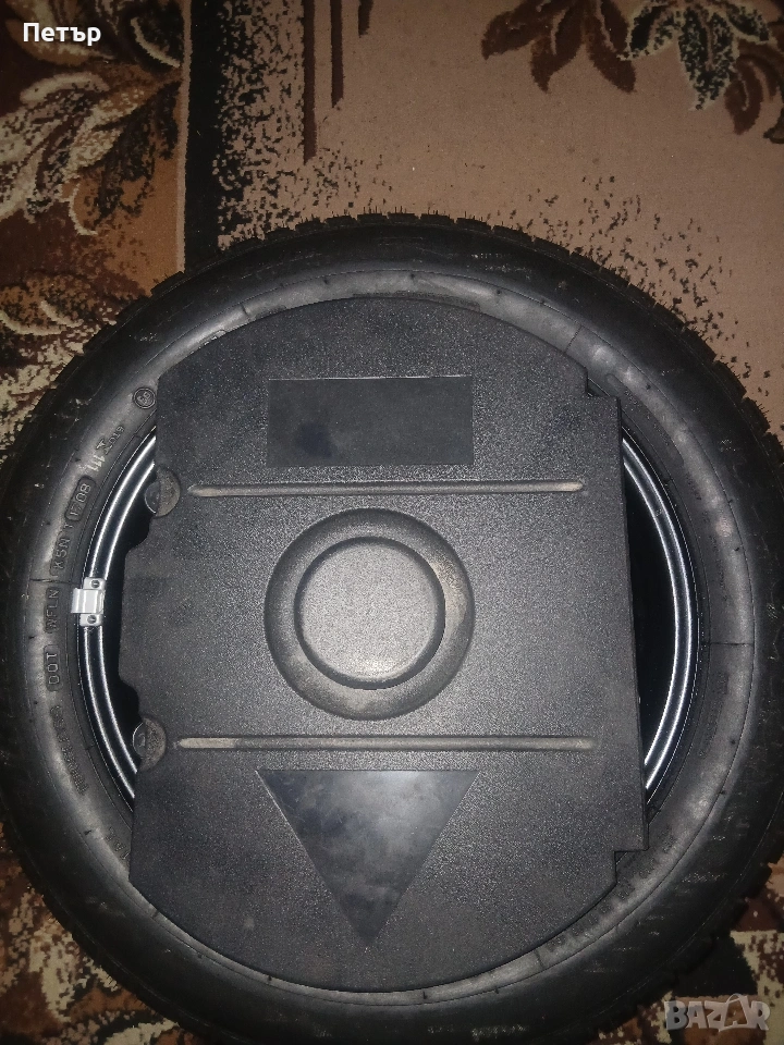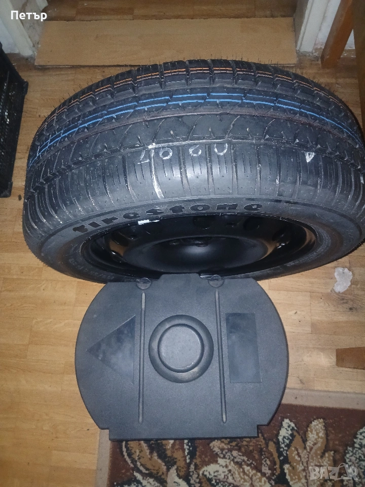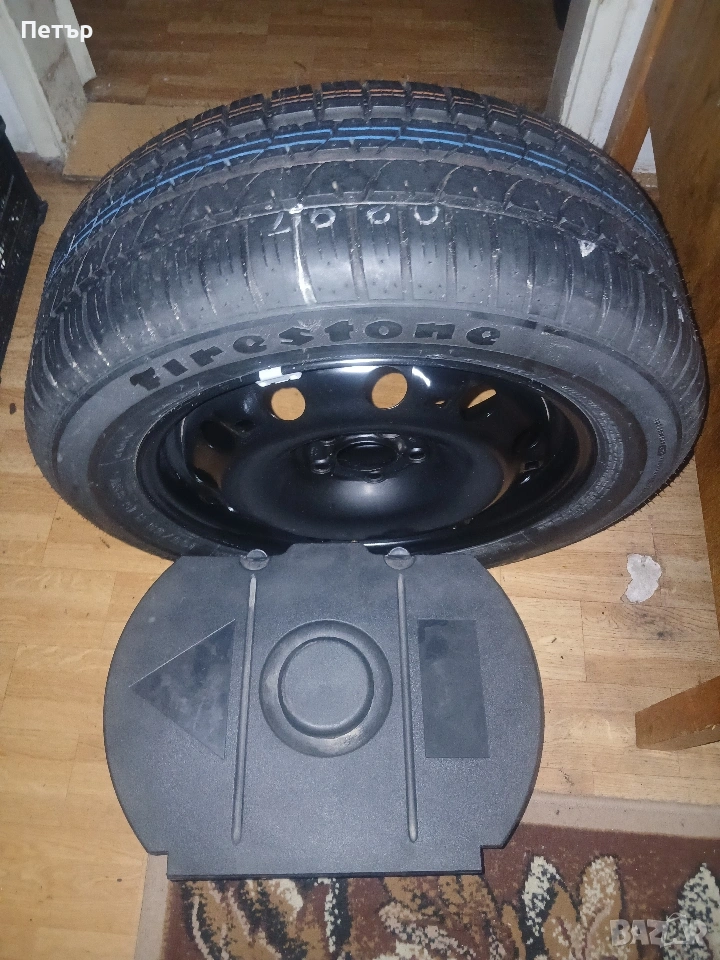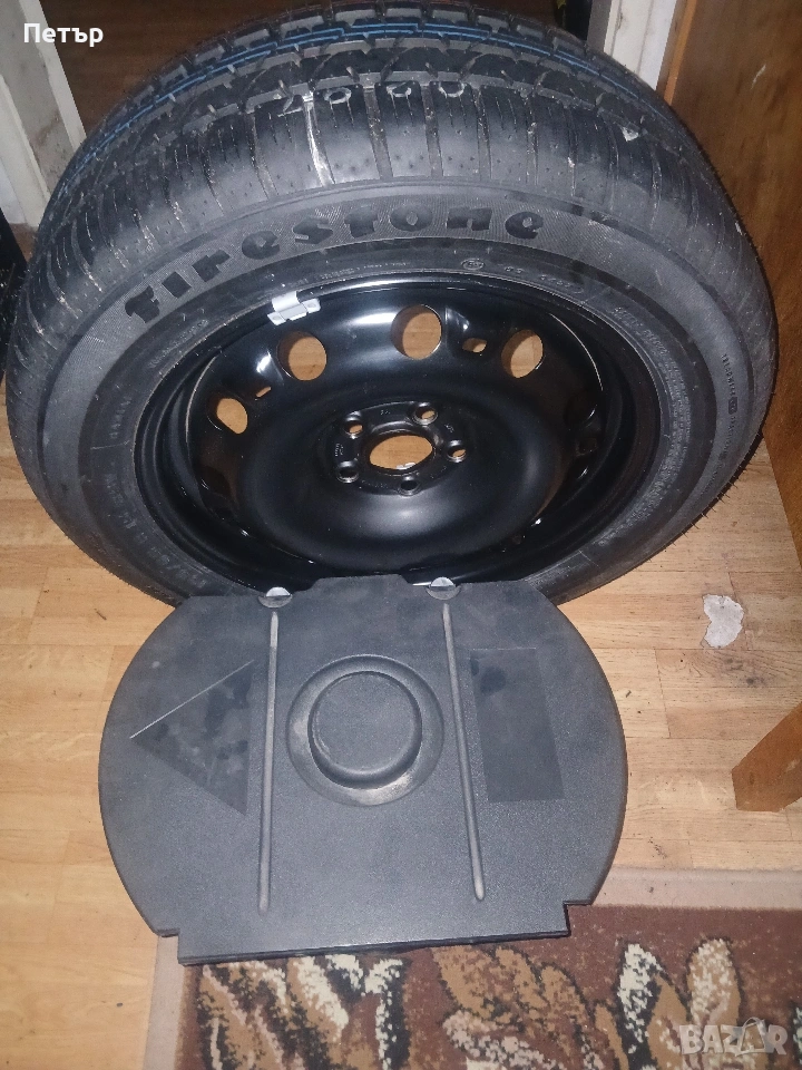 Цената е за комплекта чисто нова резервна гума с органайзер пълен с оргиналните инструменти крик,ключ,и кука.
