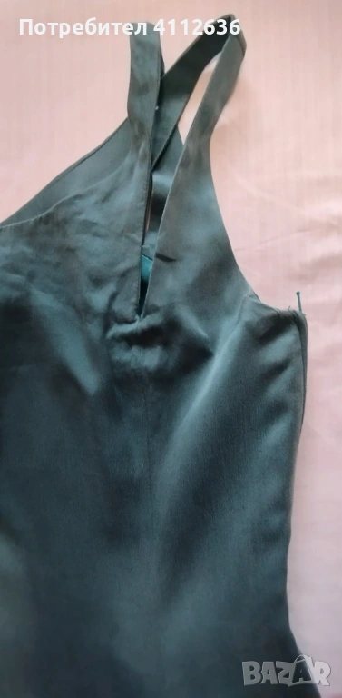 дълга рокля с едно рамо и цепка над коляното от 100% сиво-зелена италианска