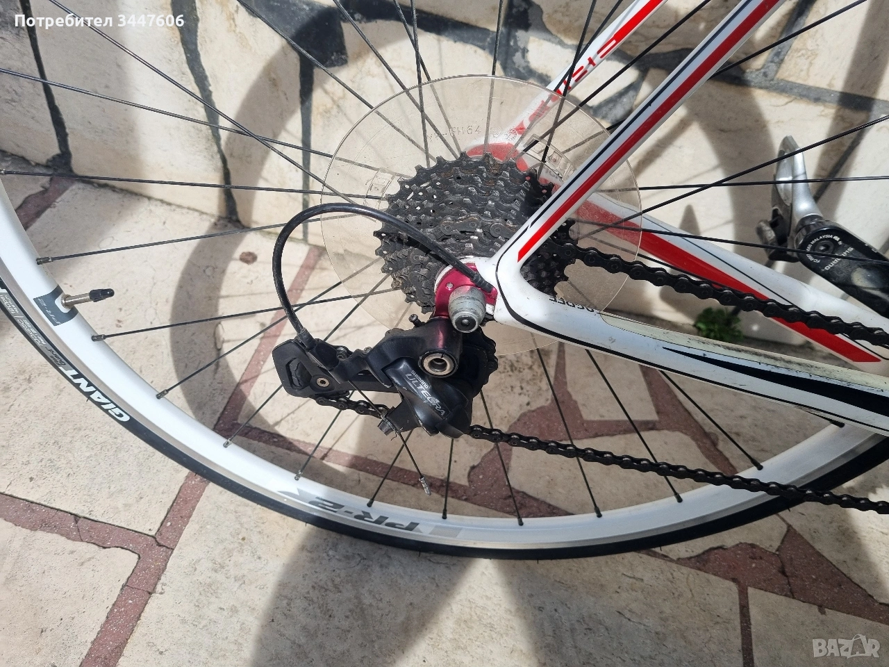 преден дерайльор - Shimano 105 , заден дерайльор - Shimano Ultegra , команди - Shimano Ultegra , седалка - selle italia