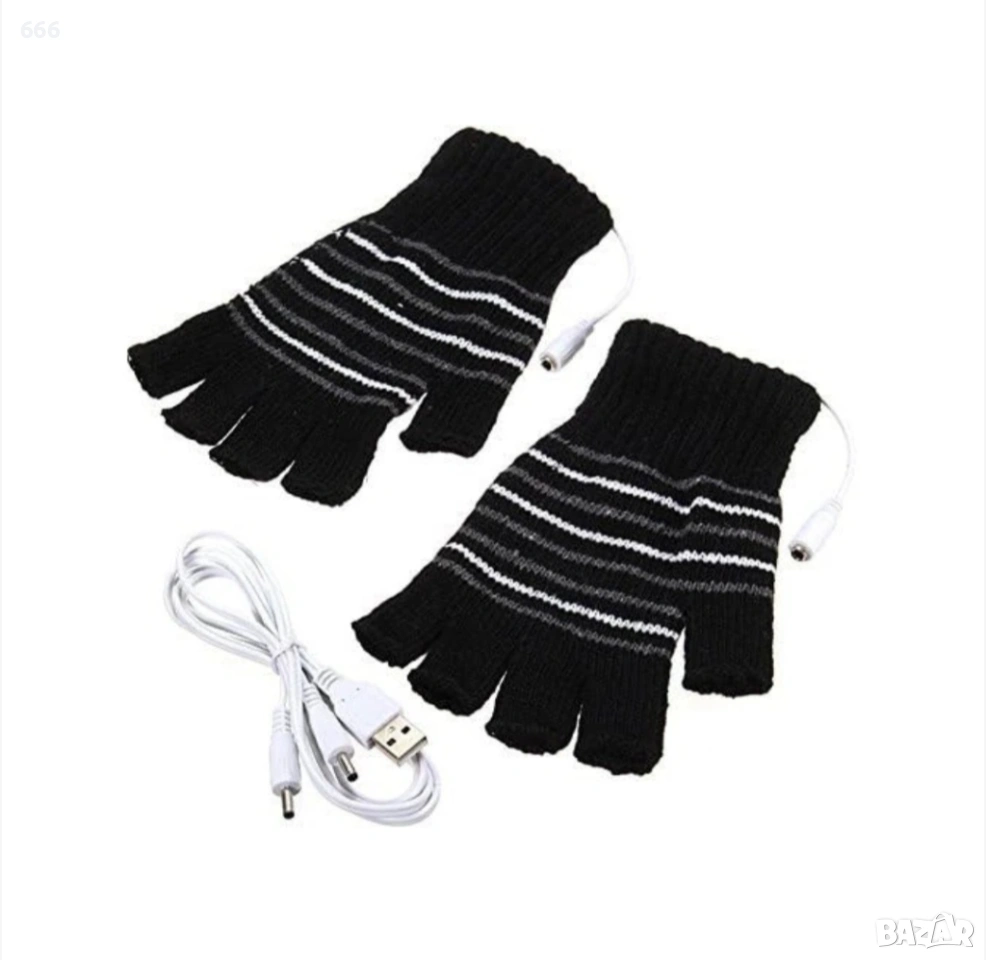 Ръкавици с USB нагревателна система, без пръсти, черни и бели, универсален размер → Обява 54045690